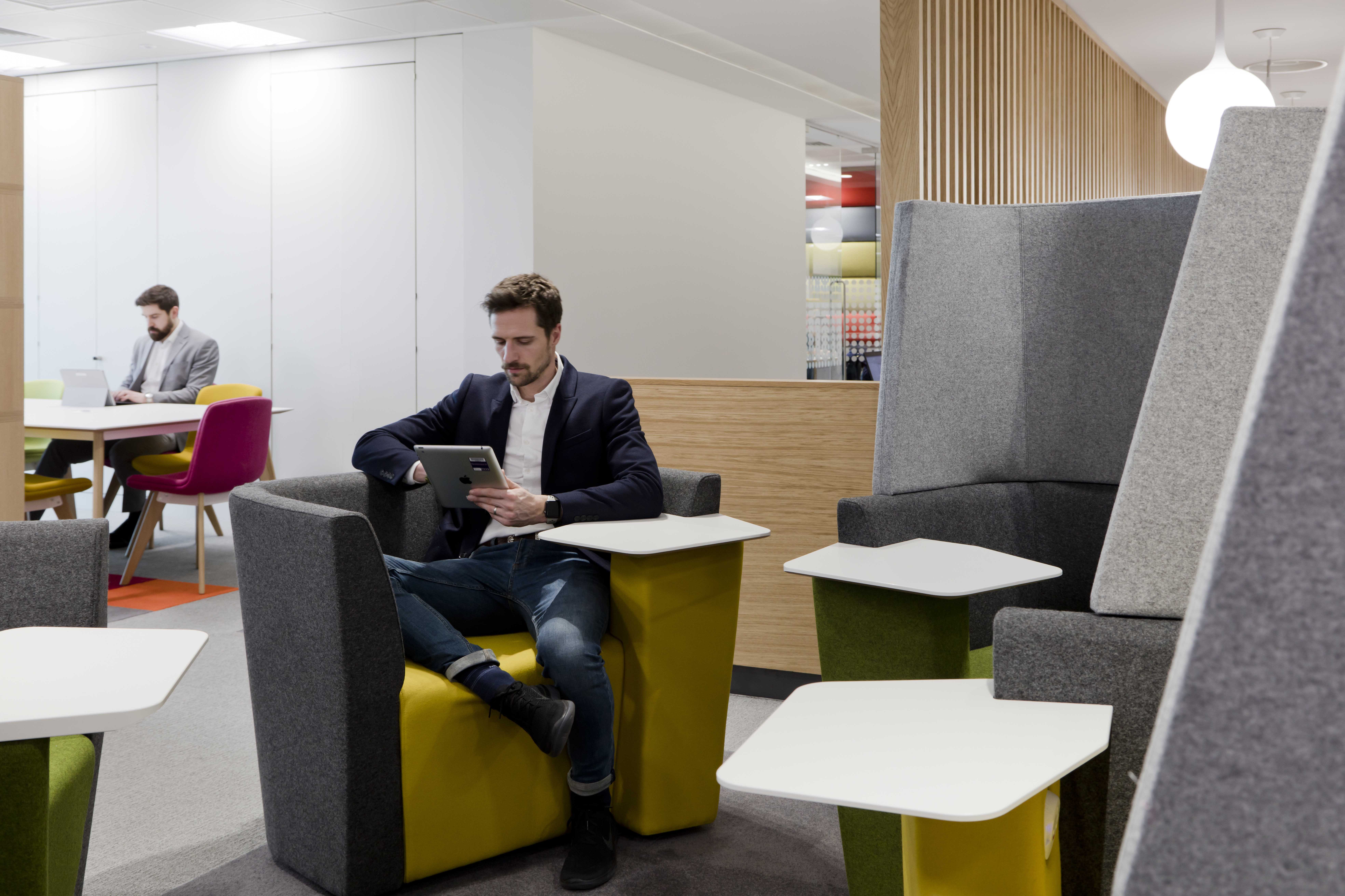 "In the new space we’re now using cutting edge technology to help us work as it suits us and our clients best, whether that’s at a conventional desk, a quiet isolated pod, a large collaborative table with Skype enabled AV or on a comfy sofa with inspirational views of Newcastle city centre."